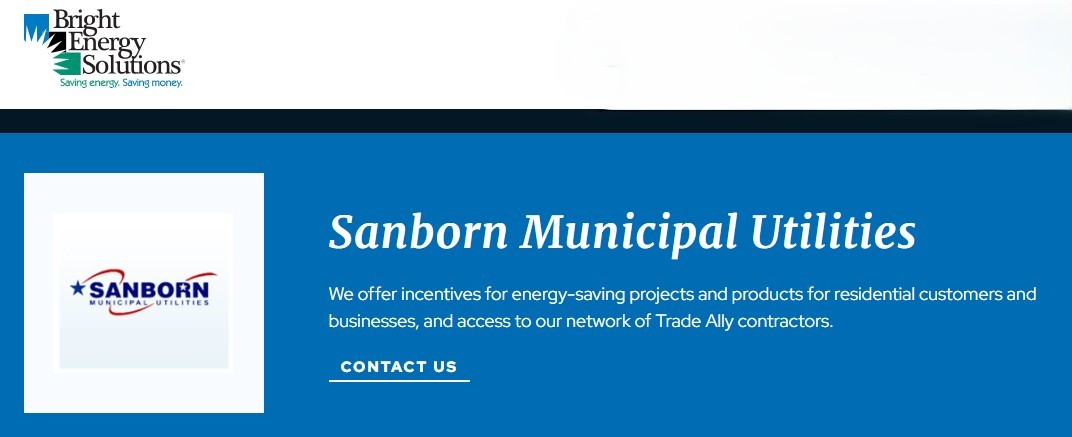 Rebates offered for Gas and Electric devices to local Sanborn Municipal Utilities Residential and Commercial Customers. For more information on current programs and offerings visit https://www.brightenergysolutions.com/members/sanborn-municipal-utilities